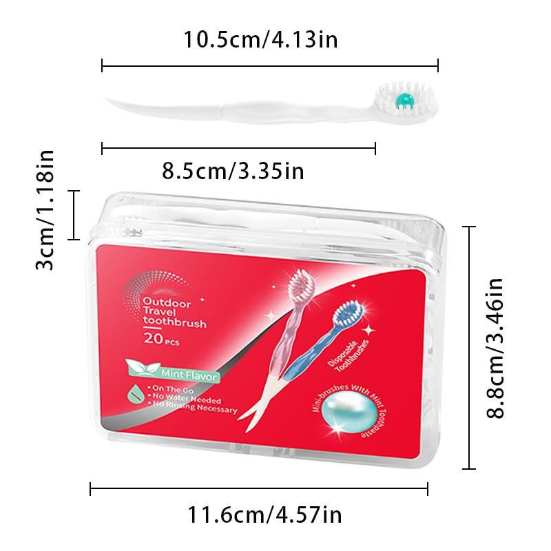 Package list:24 pcs Individually Wrapped disposable mini toothbrush;