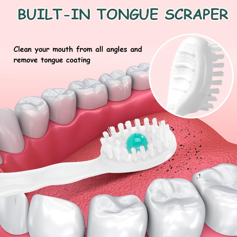 - 3 in 1 Toothbrush Portable Travel Toothbrush (Toothpaste + Tongue Scraper+Toothpick);