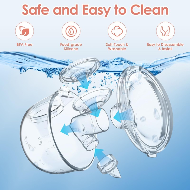 - Safe and easy to clean: The ergonomic 3D surface design adapts better to your breasts and can be cleverly put into a bra to meet the requirements of breastfeeding anytime and anywhere. The hands-free breast pump is made of safe and non-toxic food-grade silicone material to ensure the health of mother and baby. The removable and washable accessory design allows you to quickly clean the breast pump after use and provide your baby with safe breast milk.