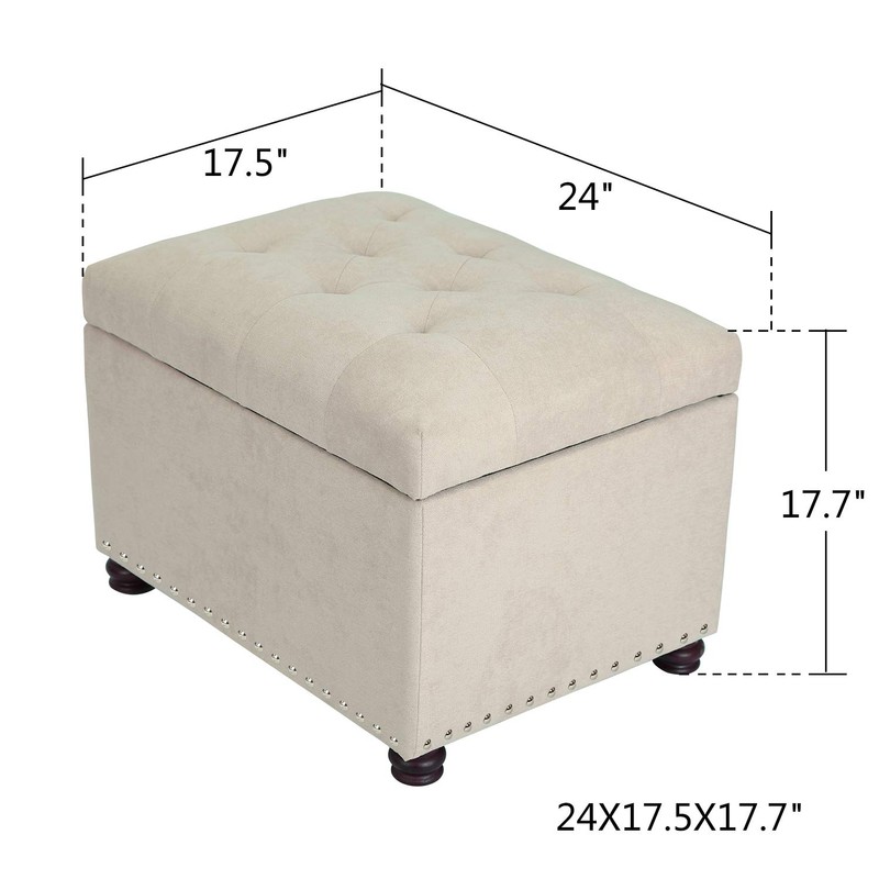 Joveco Storage Ottoman Rectangular Fabric Organization Bench (Beige)