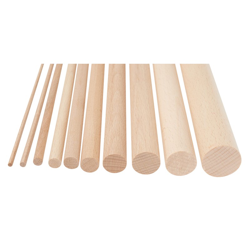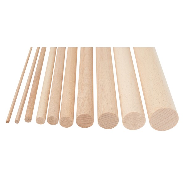 Beech round rods with a length of approx. 1 m. The rods are sanded smooth, knotless and untreated. Ideal for many natural decorations. With craft paint, varnish, glaze or papers, the beech rods can be adapted to the desired colour scheme. Can be individually shortened with, for example, a fretsaw.