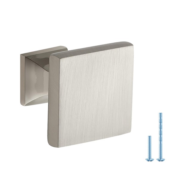JOY DECOR 10 Pack Brushed Nickel Square Cabinet Knob Kitchen Cabinet Knobs Single Hole Knobs for Cabinets and Drawers Brushed Nickel Door Knobs