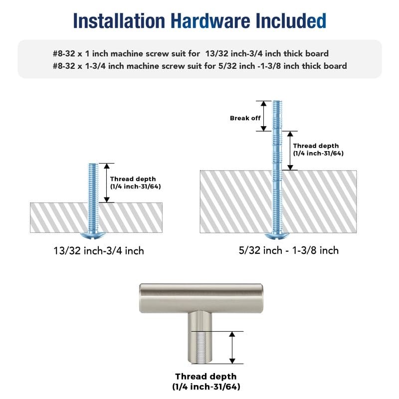 - Easy Installation: Our brushed nickel knobs offer two sizes (1" and 1-3/4") of M8-32 metric size machine screws. They fit most cabinets and are easy to install