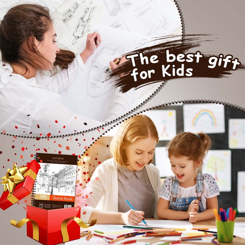 JOY SPOT! 9"×12" Sketch Book, 100 Sheets (68 lb/100gsm) Sketchbook, Spiral Bo...