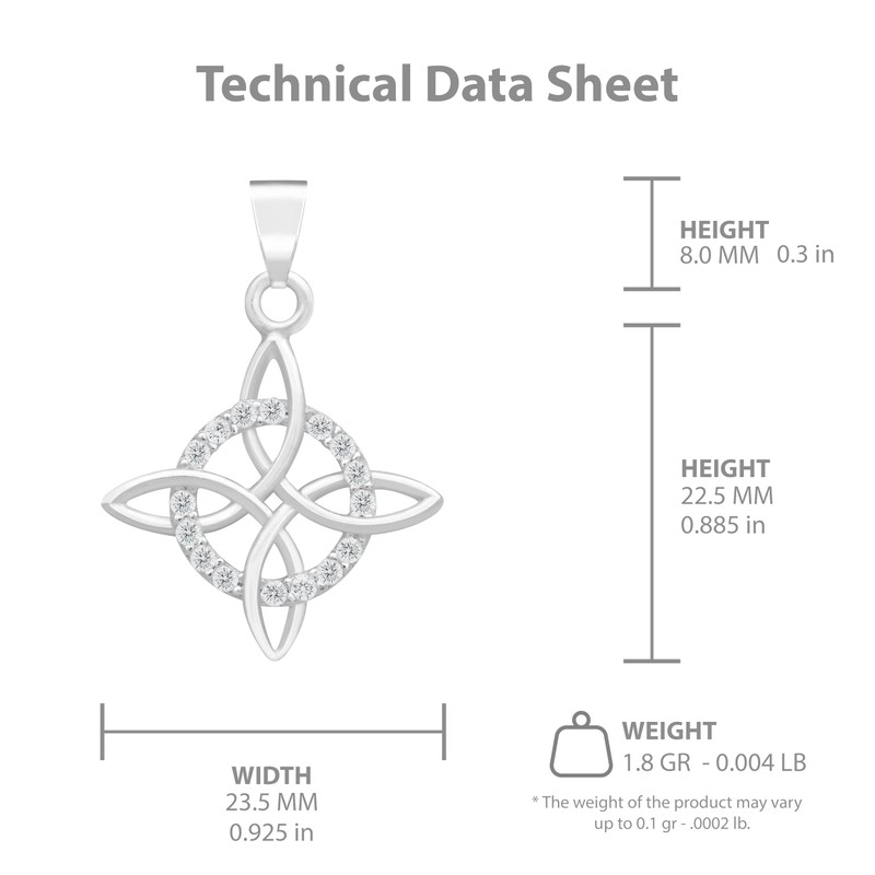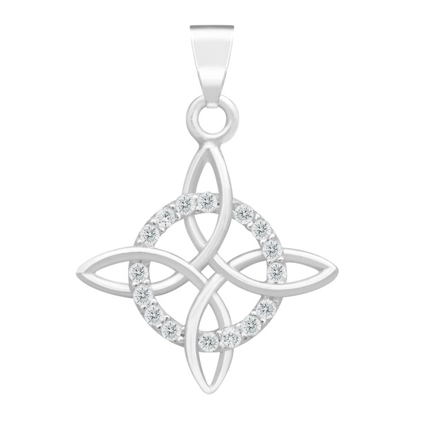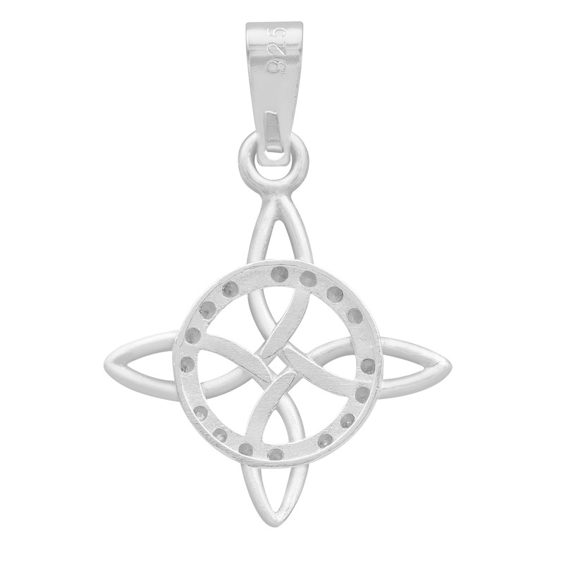 JOYARIS - Celtic Witch's Knot Pendant | Protective Amulet with Cubic Zirconia in Solid 925 Sterling Silver (White)