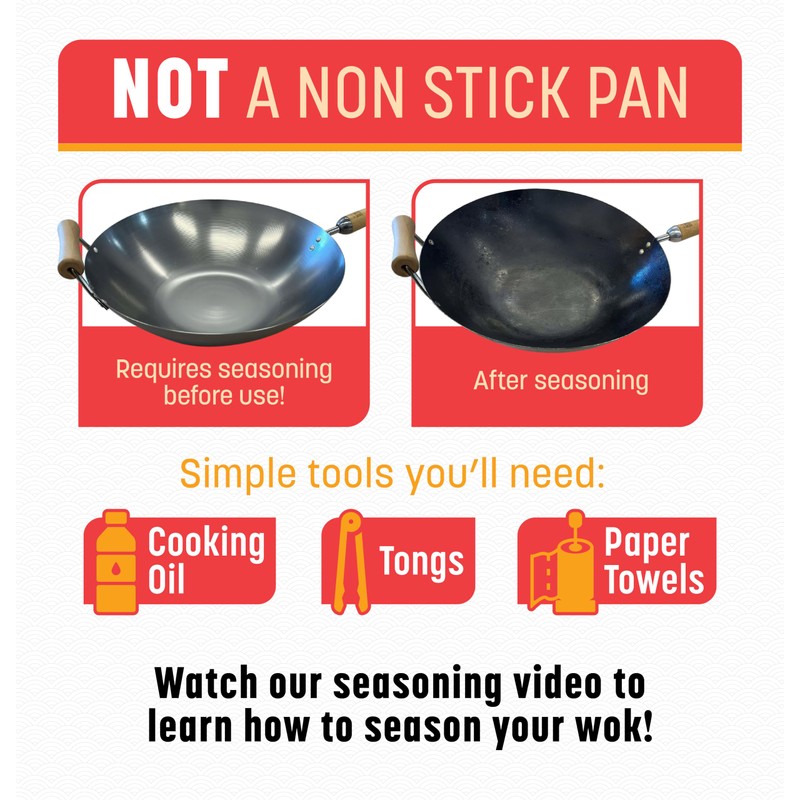 • Handwash soon after use, wiping up any moisture to keep this wok a long time