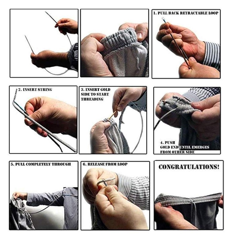 - USING METHOD❁- You just need thread drawstring through larger eye or small eye according to the thickness or weave through both eyes to hold tightly, and then insert blunt end of threader into casing, pull threader through casing until drawstring is completely threaded in casing