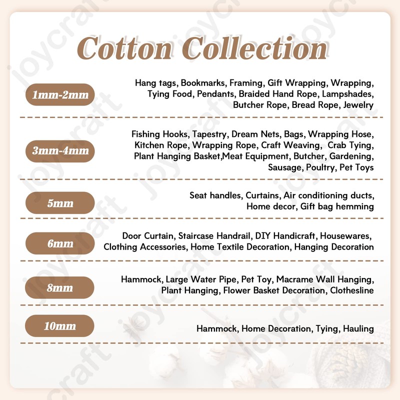 - [100% Cotton] - Our white string is made of 100% pure cotton, it will better serve you. joycraft brand craft cotton rope contains no synthetic polyester, acrylic fibers, or recycled cotton. Provides an excellent base for all your decorating or craft projects.