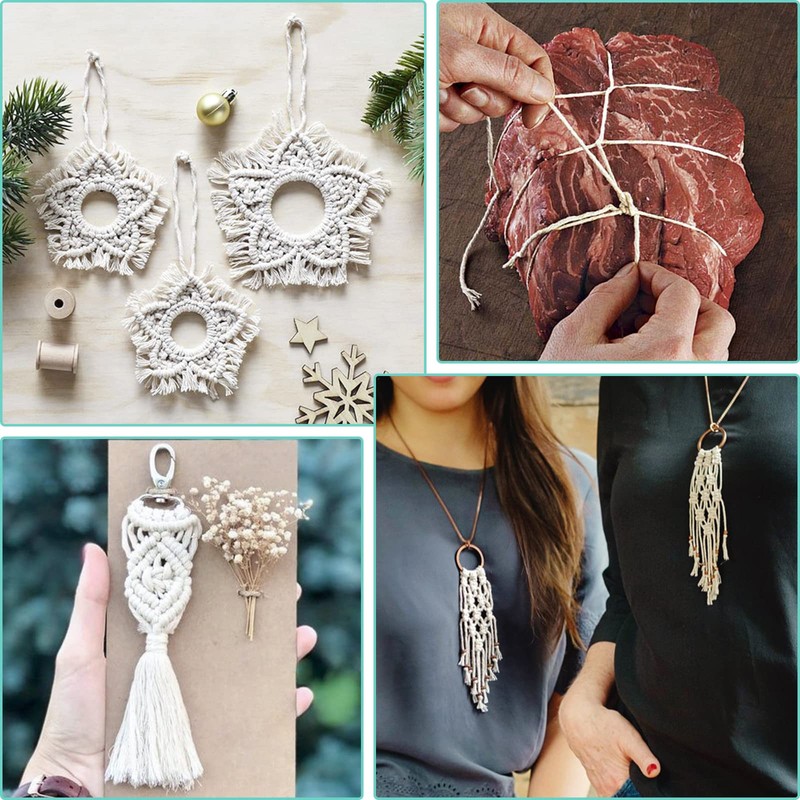 - [Multi-purpose Rope] - Our rope has many uses. It can be used as a kitchen rope for baking, grilling, meat handling, sausages, poultry, vegetables, etc. It can also be used as craft rope for handmade items, gift wrapping, gift tags, jewelry, and craft projects. It can also be used for plant hanging basket rope, plant hangers, dream nets, and pet toys.