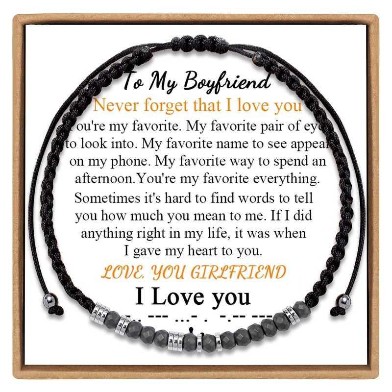 JoycuFF To My Boyfriend Bracelets for Anniversary Birthday I Love You Morse Code Bracelets from Girlfriend Gifts Christmas Valentine's Day Gifts for Him