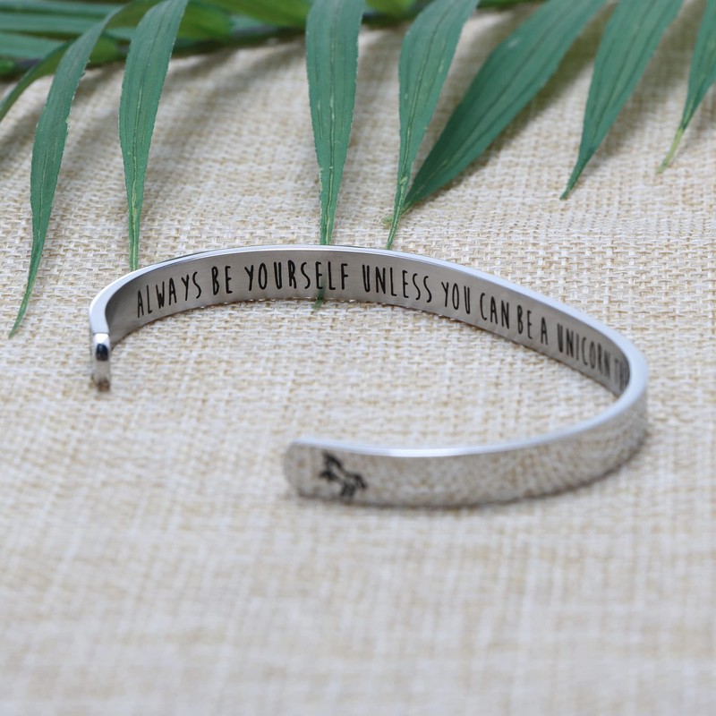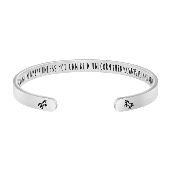 JoycuFF Unicorn Bracelets for Women Inspire Me Cuff Bangle Encouragement Stainless Steel Gifts with Hidden Message Inside Always Be Yourself Unless You Can Be A Unicorn