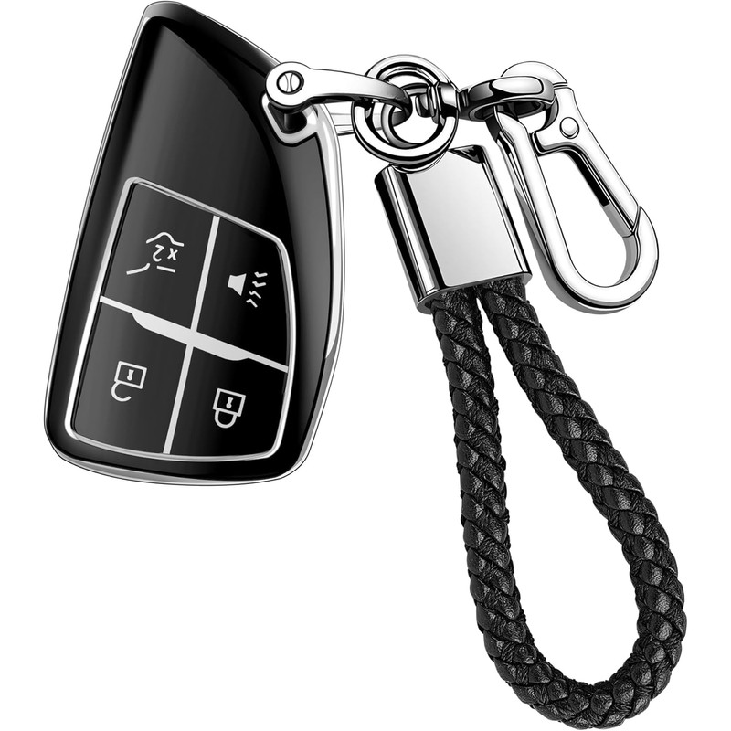 Material: Keychain Made With Premium Leather and Metal Key Cover Made with premium TPU. Super thin, soft, trending looking and pretty durable. Make your key fob look new and premium