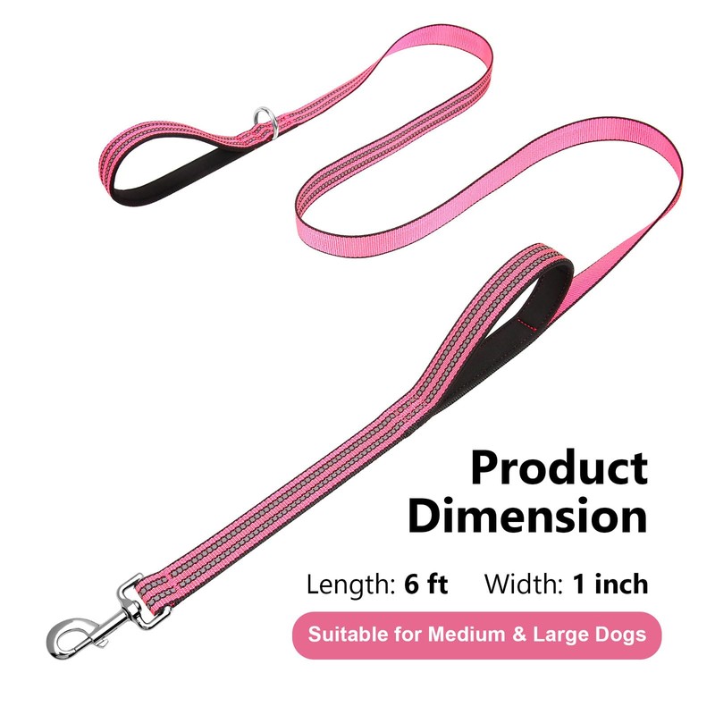 JOYEEIIOO Heavy Duty Dog Leash - 6 FT Long Double Handle Dog Leash with Padded Traffic Handles, Hot Pink