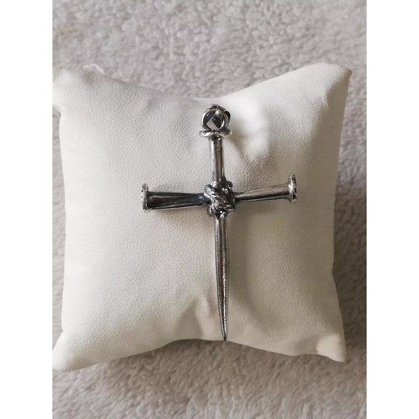 Joyeria Jara .970 Solid Silver Oxidized Nail Cross Pendant New