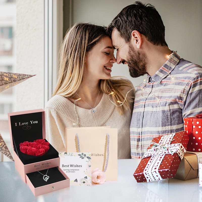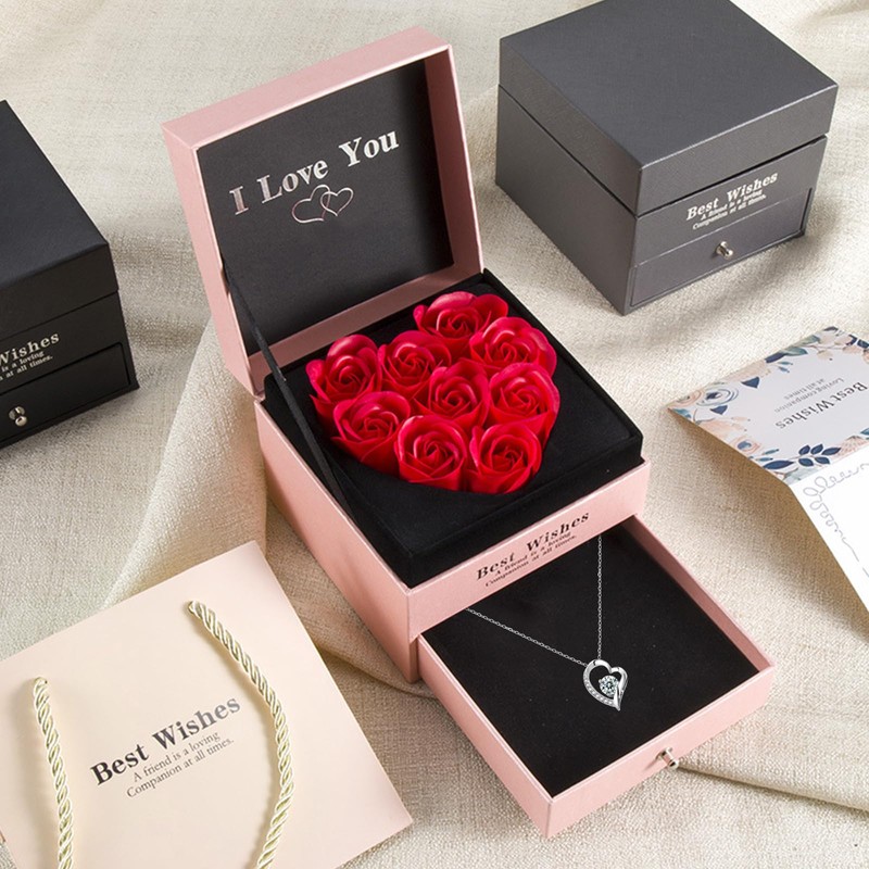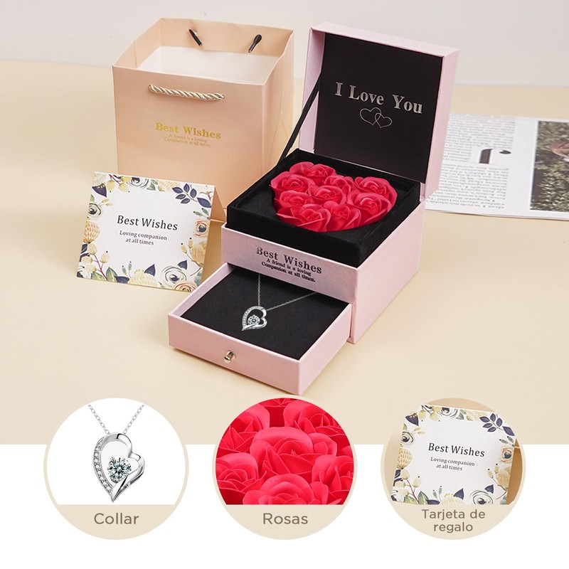 Joyero Rosa Eterna Joyero Rosa Conservada con Collar de Corazón y Tarjetas Bolsas Kit de Regalo para Mujer Regalo de Rosas para Mujer para Cumpleaños Día de la Madre Día de San Valentín Aniversario Regalo de Novia Esposa