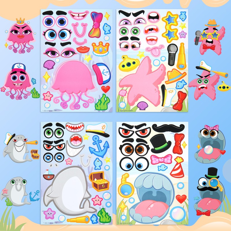 JOYIN 36 Pcs 9"x6" Sea Animals Make a face Stickers for Kids, Make Your Own Sea Animals Sticker Sheets, Party Favors Kids Crafts, Goodie Bags Stuffers for Kids, Classroom Rewards