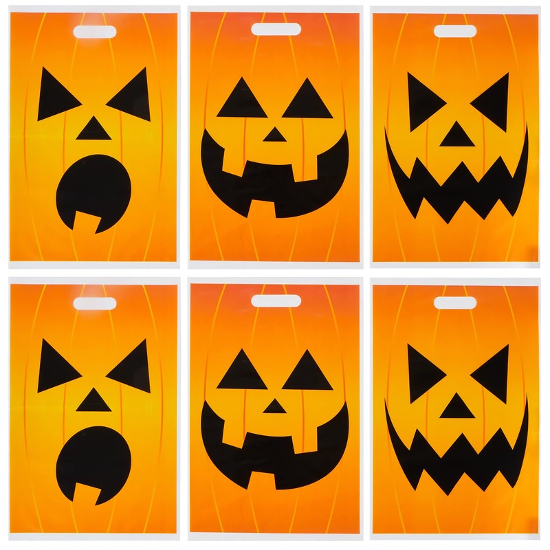 - đUNIQUE DESIGN. The Halloween plastic candy bags feature an orange background, printed with a big pumpkin smile and a scary face, which adds a strong Halloween festive atmosphere and can immediately attract children's attention at Halloween parties! Super Durable. Design to Sustain a Large Amount of Candy. Hold All Your Treats in One Spooky Pumpkin Face Candy Bags to surprise kids and enjoy a nice Halloween party!