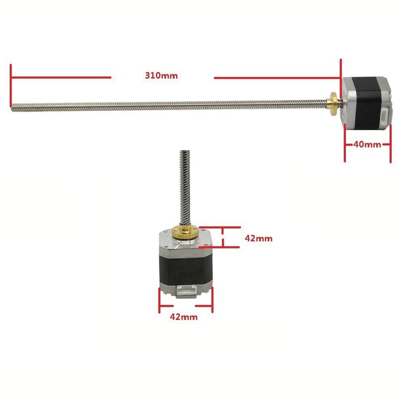 - Motor paso a paso Nema 17 con tornillo de plomo T8 integrado de 300 mm, mucho estable que la conexión de acoplamiento del eje