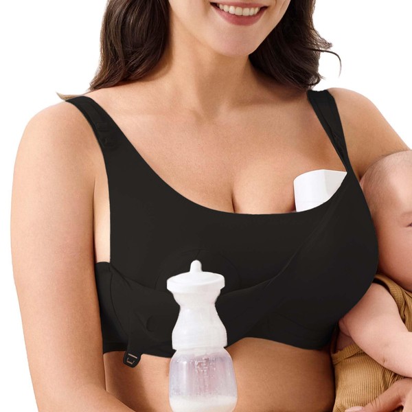 JOYNCLEON Wireless Hands-Free Pumping Bra, Adjustable with Extendable Straps and Hook Extende (US, Alpha, Medium, Regular, Regular, Black, Hands Free Pumping Bra 2.0)