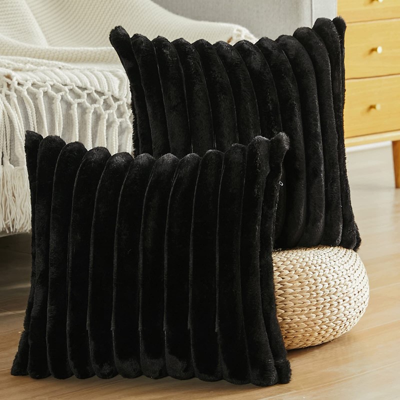 Joyouth Set of 2 Double-Sided Plush Velvet Cushion Covers, Soft Artificial Fur Cushion Covers, Decorative for Couch, Sofa, Bedroom, Living Room, Home, 40 x 40 cm, Black