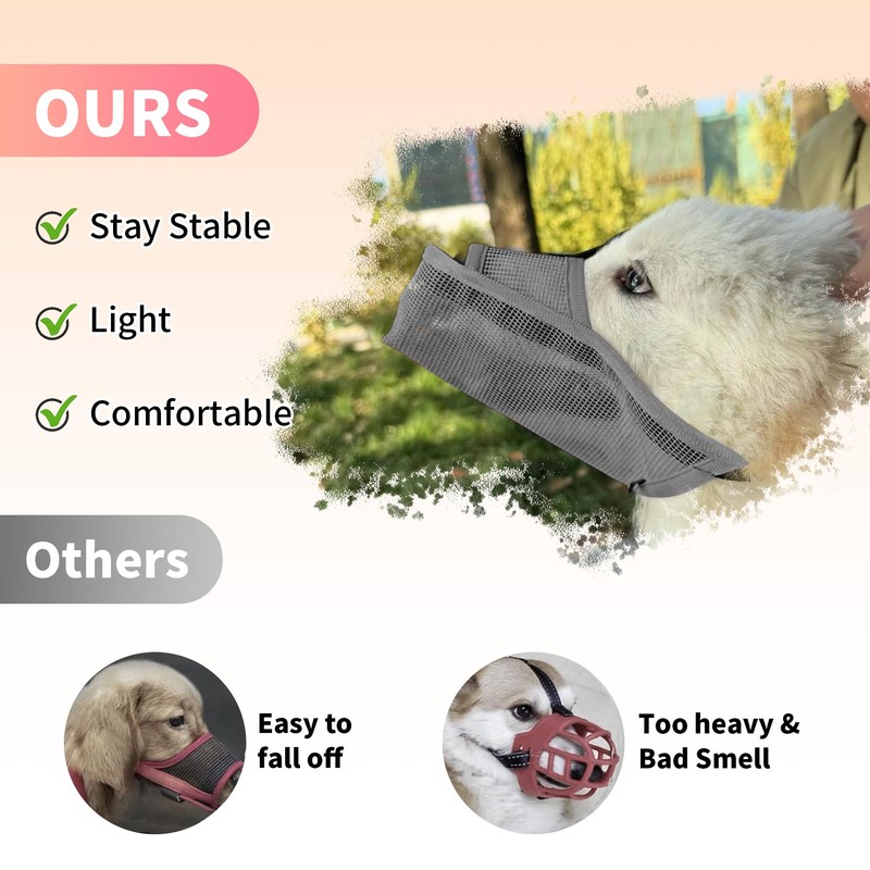 - Upgraded Dog Muzzle: Our dog muzzle is designed specifically for dogs with long snouts (please note that it's not suitable for any dogs with short snouts).In addition, we have added an additional strap tied to the forehead to better secure and prevent it from falling off.