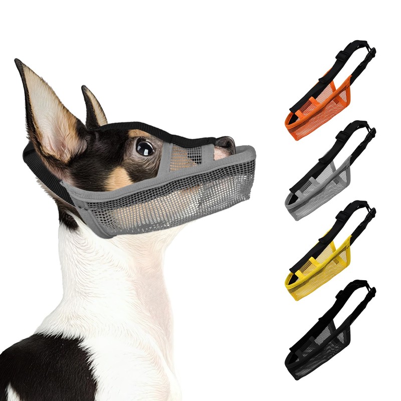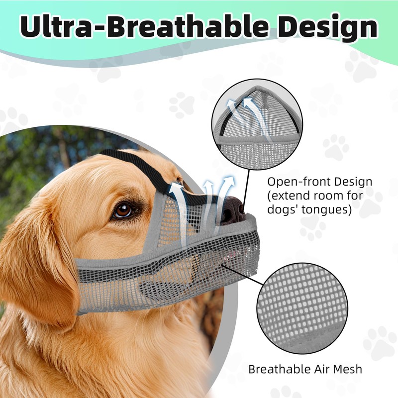 It's made of breathable mesh fabric, allowing dogs to breathe and drink water freely. The front part of the dog's nose is open, exposing a part that does not restrict the dog's nose from smelling.