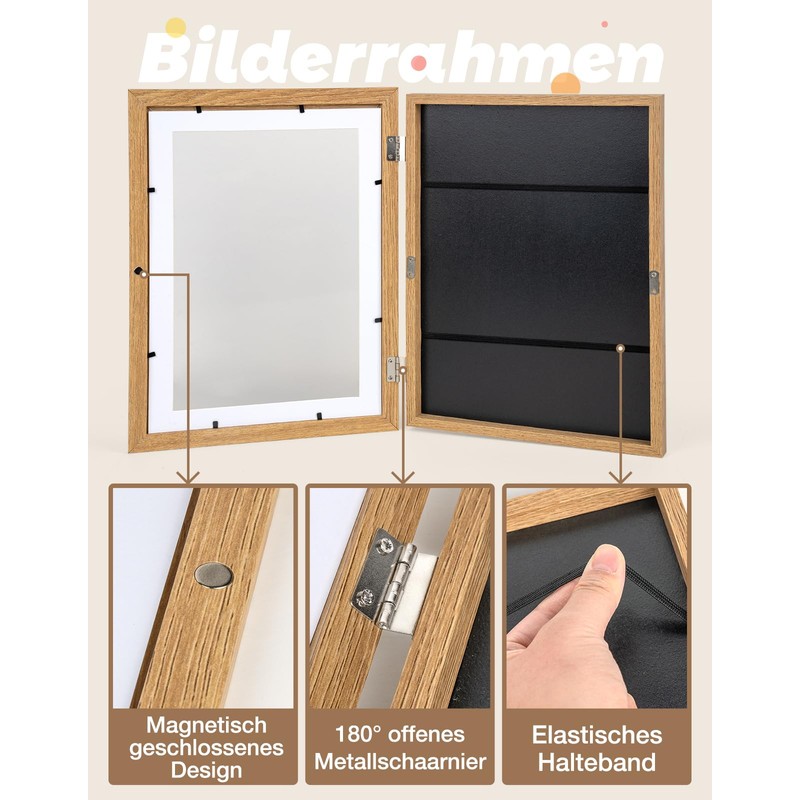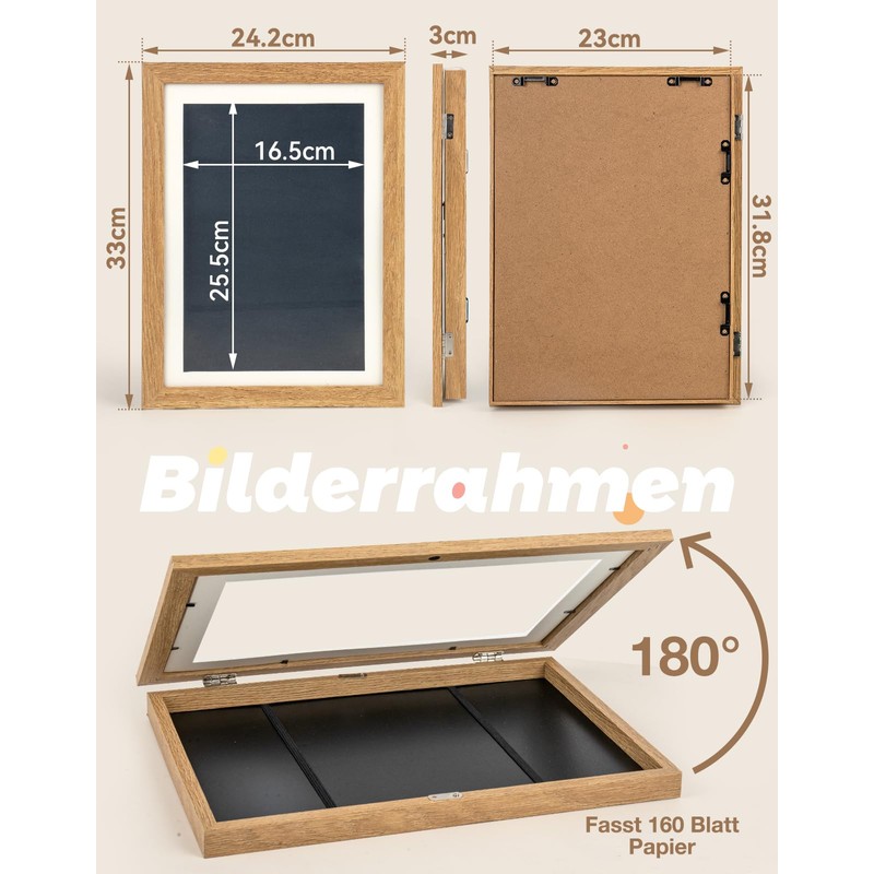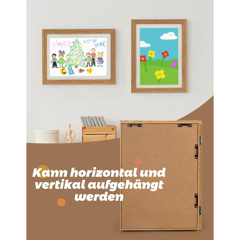 Joyshare Picture frame for children's drawings A4 - creative works of art stylishly present & archive. Premium materials, crystal clear view frame made of high-quality MDF with 1 mm thick acrylic glass window - protects drawings from dust and creases, while colours look vibrant. Tip: remove the protective film on both sides before use for maximum transparency. Design with attention to detail. Integrated, reinforced white mount frames any artwork like in a gallery. 8 flexible metal clips hold sheets securely - no slipping, no wrinkles! Perfect for A4 drawing, crafts or school projects. Space for 160 memories - easy to change. Innovative multi-layer system stores up to 160 A4 sheets Show off new masterpieces in seconds - simply flip without opening the frame. Ideal for growing art collections. ✨ Hang flexibly, creatively design 4 adjustable metal hangers on the back allow: ✅ Horizontal or vertical on the wall ✅ Combine multiple frames into an art gallery ✅ Perfect for children's room, hallway or kitchen area 🎁 The emotional gift - forever young at heart Whether for a birthday, school or Christmas - a gift that immortalizes childhood moments. Parents, grandparents and educators love it! Why Joyshare? Made in China - robust and tested for harmful substances. Easy to clean with microfibre cloth. Includes step-by-step assembly instructions (English language not guaranteed). Order now and present your child's creative journey in style! 🌟