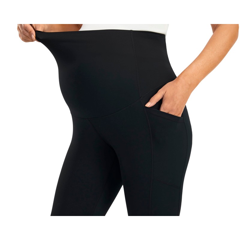 JOYSPELS Maternity Leggings Mesh Pregnancy Pants Over The Belly with Pockets Black M 25"