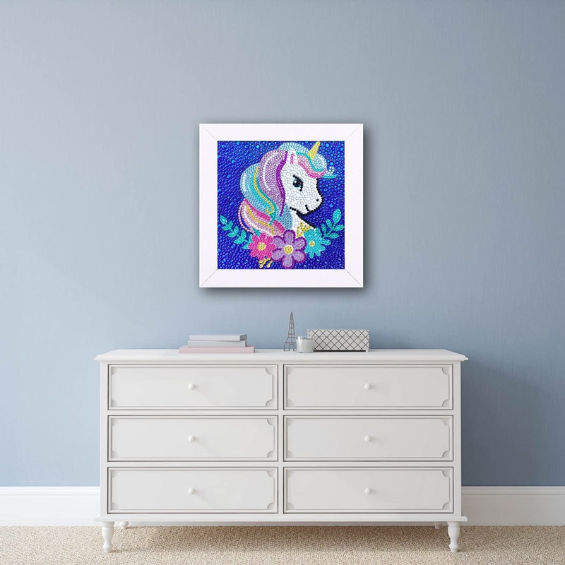 JOYSTRY 5D Diamond Painting Kits for Adults, Gem Dot Art Kits Paint by Numbers Unicorn Craft Gemstones Latch Hook Kits with Frame (Unicorn-2 18x18 cm)