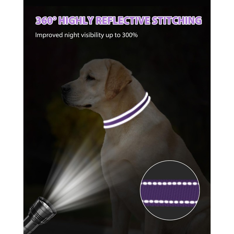 • 360° Reflective Safety: Stay visible during night walks! The reflective dog collar uses high-brightness stitching that reflects light up to 5x farther, keeping your pet safe in low-light conditions