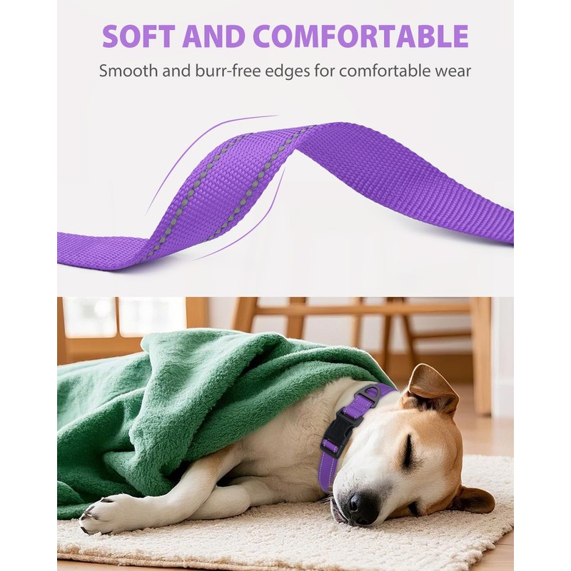 Joytale Reflective Dog Collar, Adjustable Nylon Pet Collar with Quick-Release Buckle for Medium Dogs, Purple, M