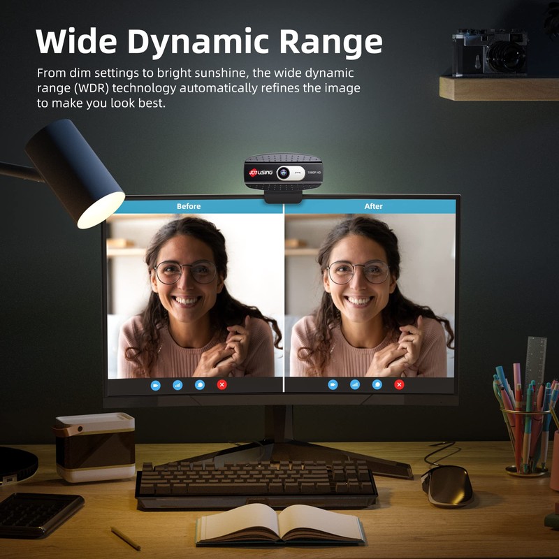 JOYUSING 1080P HD Webcam with Microphone, Webcam for Gaming Conferencing, Laptop or Desktop Webcam, USB Computer Camera for Mac