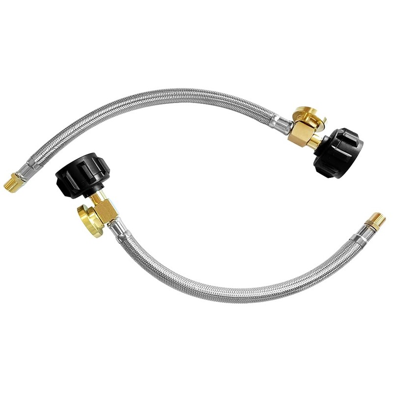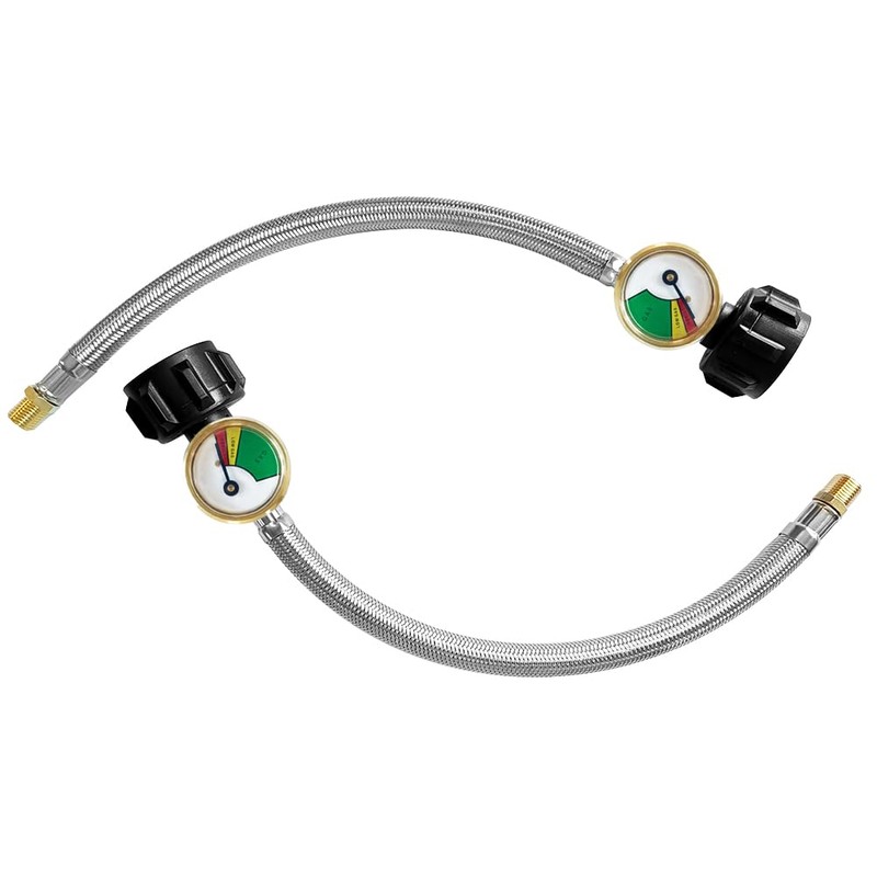 Joywayus 2 mangueras de propano RV de 12 pulgadas con calibre, manguera trenzada de acero inoxidable, conector de mangueras de gas Rv Lp para regulador estándar de dos etapas, 40 libras 250 PSI, accesorios NPT /QCC1