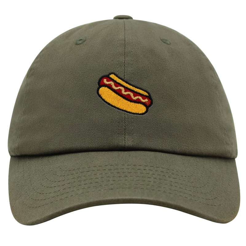 JPAK Hotdog Premium Dad Hat Embroidered Baseball Cap Foodie Sausage Olive Green