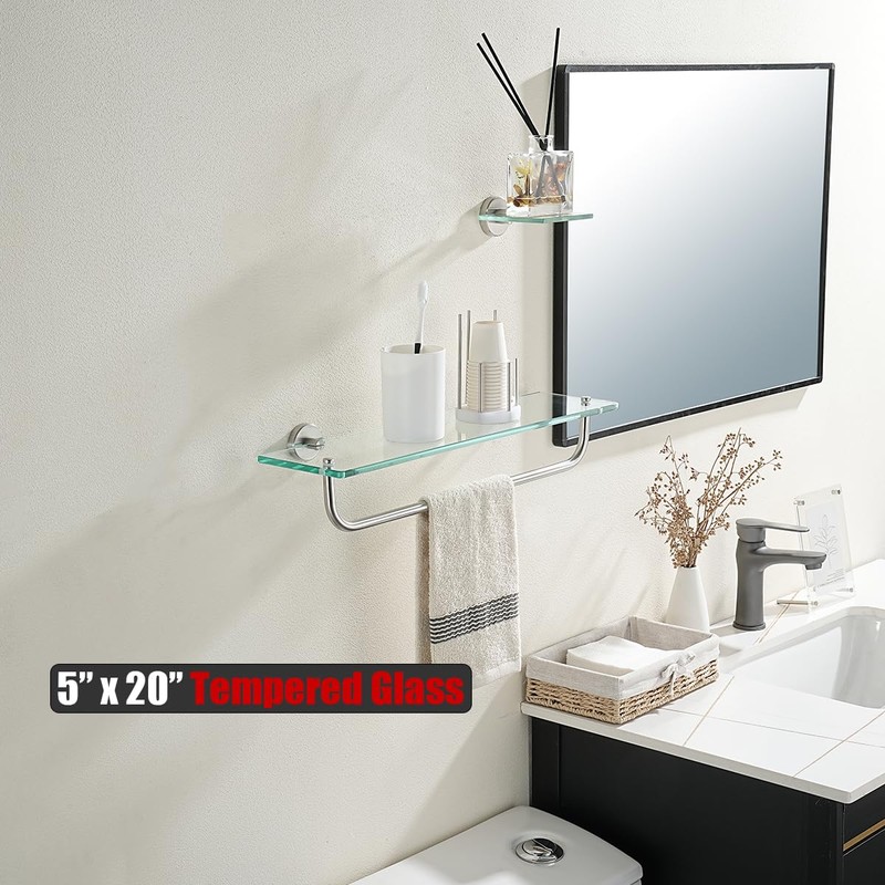 - 【8MM Tempered Glass Shelf】20 x 5 inch glass to keep bath items from toppling. Make your bathroom organized and get extra room.