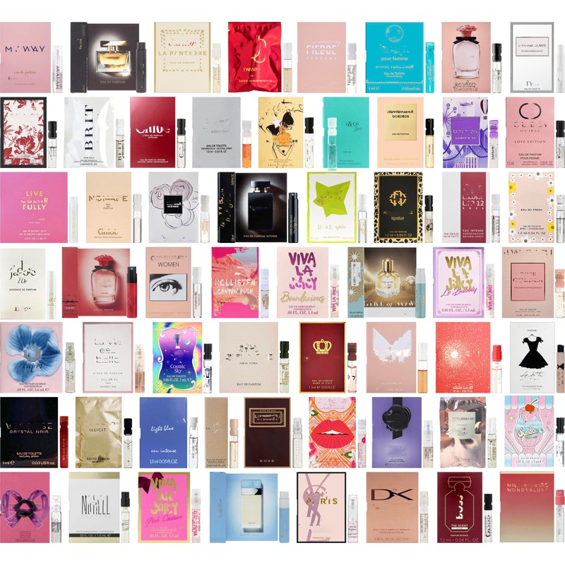 • Lot of 6 popular name brand fragrance sample vials for women. Each sample size is between 0.02 to 0.06 ounces.