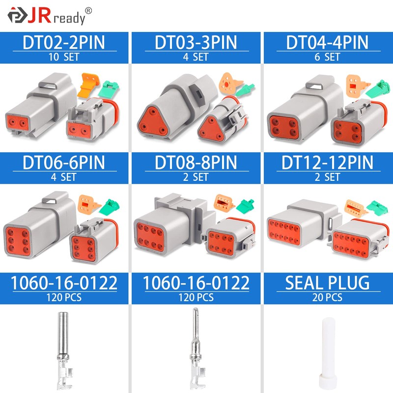 - 【Versatile & Reliable】 JRready DEUTSCH DT connectors offer field-proven reliability and rugged quality and are widely used in truck, bus, off-highway, construction, agriculture, mining, emergency vehicles, forestry, recreational, marine and motorcycle applications.