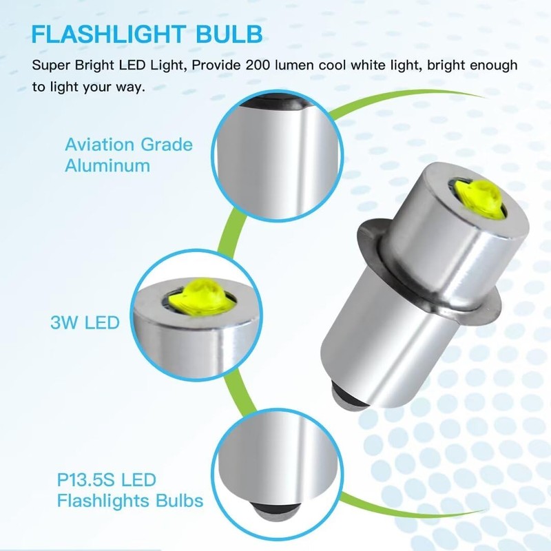 - 【Super Bright LED Light】Light your way with white lighting and the High Power 200-lumen output of this flashlight LED bulb, as opposed to the dull yellow of bulbs.
