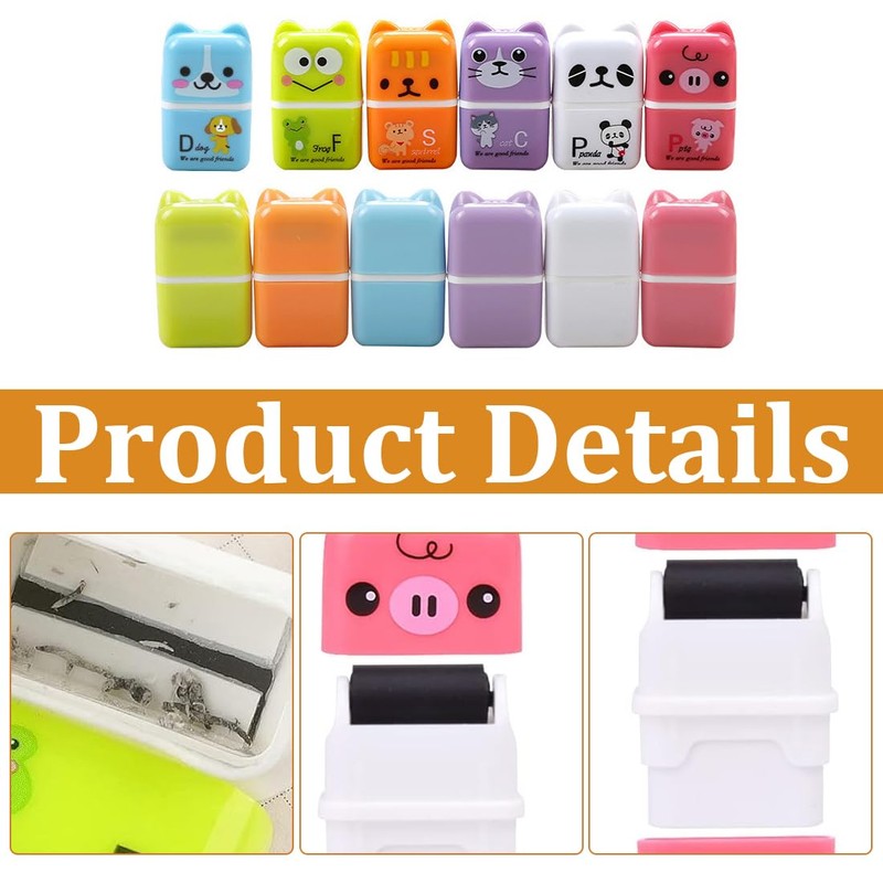 JRYXDS Cartoon Roller Eraser, 6 Pieces Coloured Pencil Eraser Roller, Cartoon Animal Eraser Party Bag Gift for Children School Home Office Supplies Stationery Sketches Painting