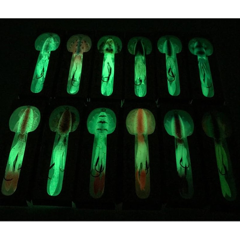 - UV light is not visible for human being but work well for fish especially in the dark. The squid skin is fully coated by UV and glow painting, and it will emit the light in the darker environments. So basically fish can catch this cute squid even in deep sea.