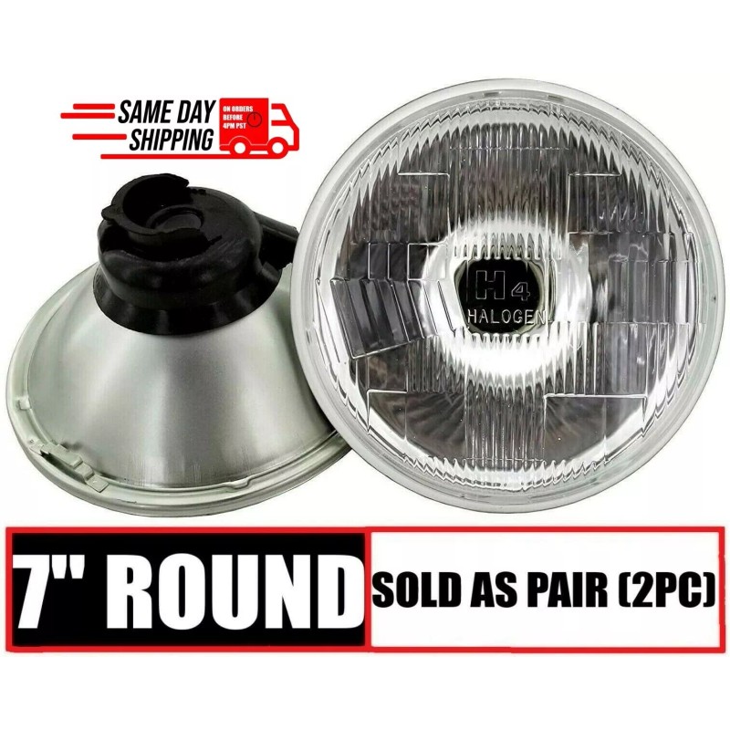 JS Power 7" Round Glass Headlight Lamp Housings Hi/Low Beam Fits H4 LED HID Halogen Bulbs