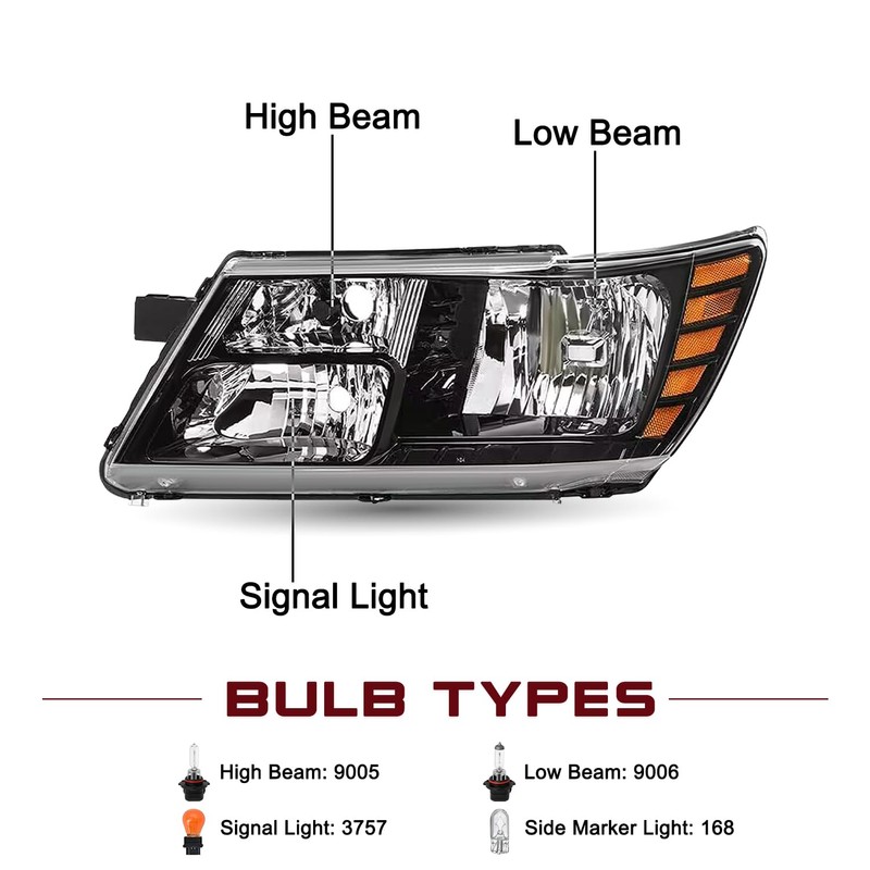 - 💡【VEHICLE COMPATIBILITY】Headlights Assembly Compatible With 2009-2020 Dodge Journey Models, SE | SE Plus | SXT | SXT Premium | AVP |R/T | R/T Rallye | Lux | Limited | Crossroad in | Express | Mainstreet | Crew | Canada Value Package. Bulb is not included. High beam bulb type: 9005; Low beam bulb type: 9006; Signal light:3157A. OEM Part Number: CH2503222, 5116288AA, 5116288AB, 5116289AA, 5116289AB, CH2502222, CH2502265, CH2503265, 68200085AB, 68200084AB