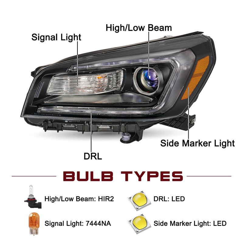 - 【OEM PART NUMBER】23358994 GM2502376 23358995 GM2503376. High Beam/ Low Beam:HIR2(NOT INCLUDED),signal light:7444NA(NOT INCLUDED),Side Marker Light:LED(INCLUDED),DRL:LED(INCLUDED)