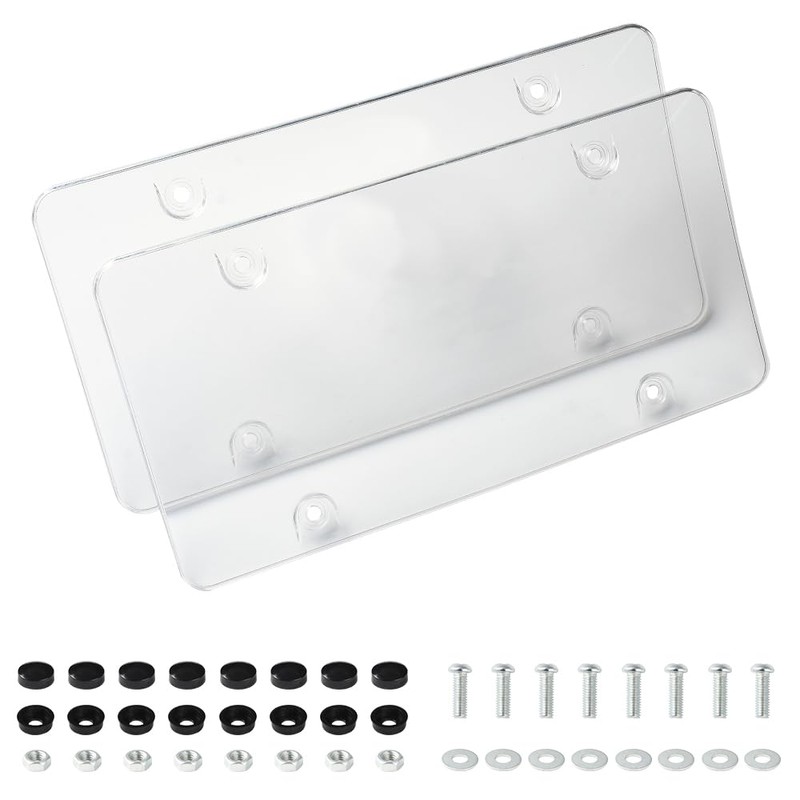 JSCARLIFE Clear License Plate Cover-2 Pack License Plate Protector,PC Material License Plate Frame with Screw Caps Cover Kit for US/CA Standard Cars AAA (Clear-2)