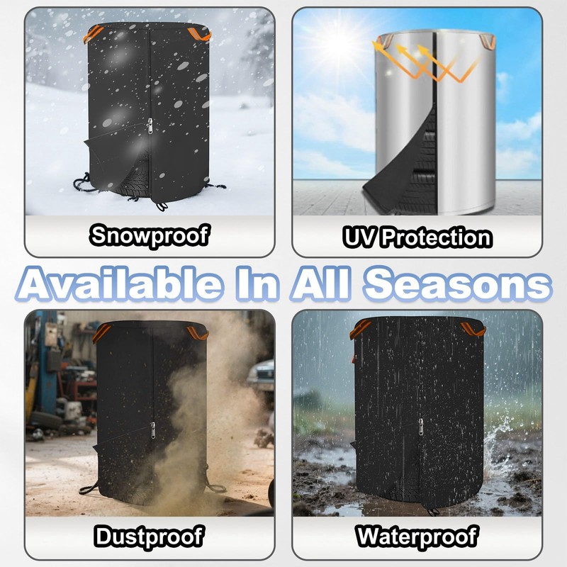 10.000 PA wasserdicht und winddicht: Mit versiegelten Reißverschlüssen und verstärkten Doppelnähten blockiert diese 100% wasserdichte Reifenabdeckung (bewertet 10.000 PA) Regen, Schnee und Feuchtigkeit. Der verstellbare Kordelzug rastet sicher über den Reifen ein und verhindert Verdrängung bei starkem Wind – ideal für die Lagerung bei jedem Wetter im Freien in britischen Klimazonen.