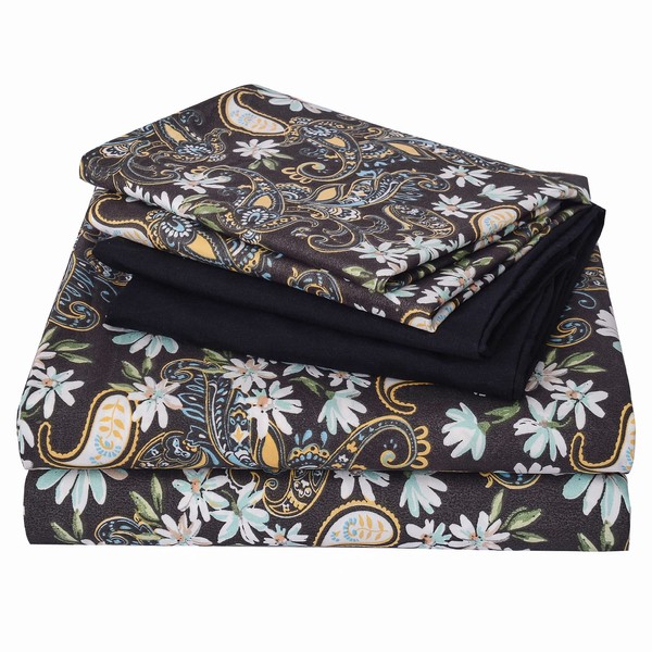 - Beautiful Floral Sheet Set - Say goodbye to boring solid sheets, refresh your bedroom with this black paisley floral print sheet set, easy to match your home decor and season