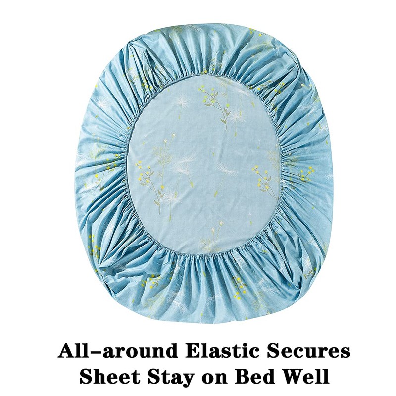 JSD Blue Floral Print Sheet Set Twin Size, 3 Piece Soft Botanical Microfiber Sheets Extra Deep Pocket Wrinkle Free