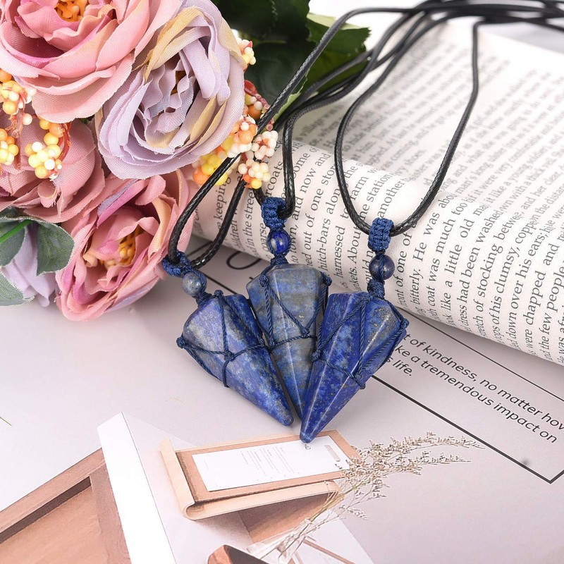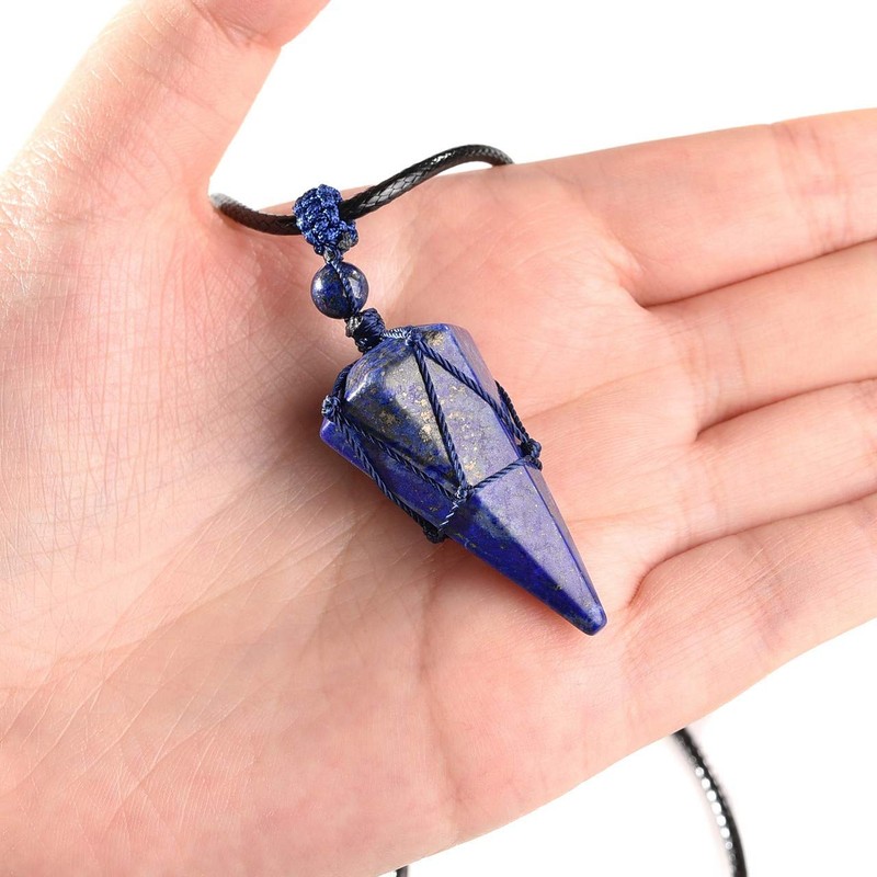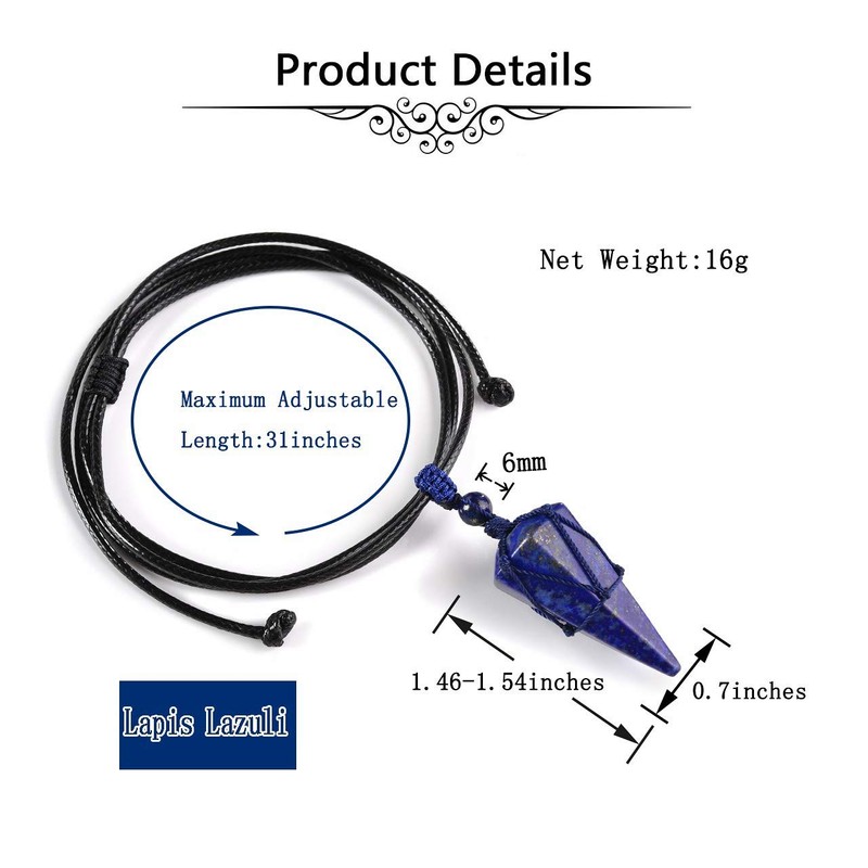 - Crystal Pendant Material: Dyed Lapis Lazuli, Rope, Wax Rope Chain