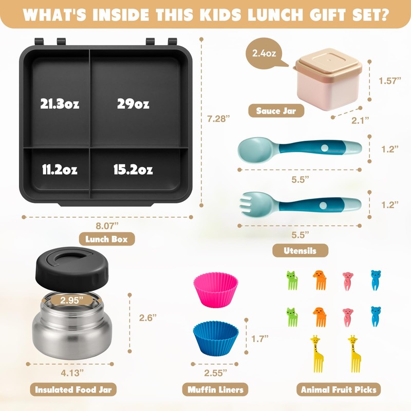 - KID-SAFE & PARENT-APPROVED DESIGN:BPA-free, food-grade materials ensure child safety. Easy-open latches + vent plug empower little hands, while the lightweight body and sturdy handle let kids carry it independently. Portion-controlled compartments promote healthy eating habits.