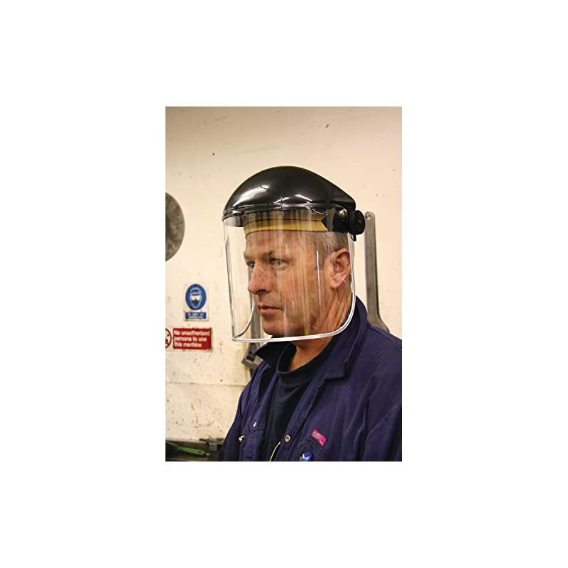 • Materials - brow guard: Polycarbonate, head harness: Nylon with Steel fittings, chin guard: Polycarbonate and visor: Aluminium binding